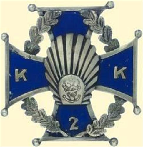 reverse with two small screws. Unusual interesting item! WES. 210 var.<BR><b>Country:</b> POLAND<BR><b>Type:</b> REGIMENTAL BADGES<BR><b>Group:</b> INFANTRY BADGES