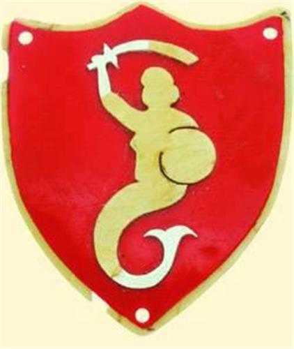 Coat of arms of Warszawa, celluloid three parts construction, size 36,7 x 42,3 mm; three holes to sew