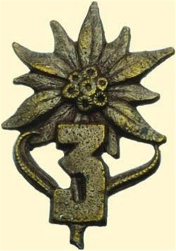 Uniform insignia, edelweiss with "3", base metal silver plated, one part cut out construction with profile-