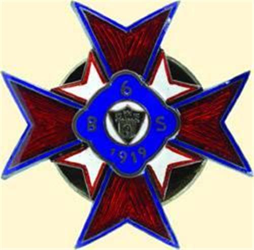 Silver, obverse enamelled, one part construction, inscription: "6 BS 1919"!, size 39,5 x 39,4 mm; screw