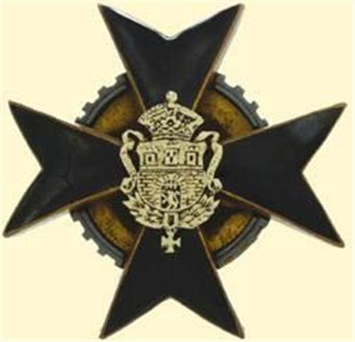 Bronze, cross obverse enamelled, superimposed small coat of arms of Lwow (without enamels), three