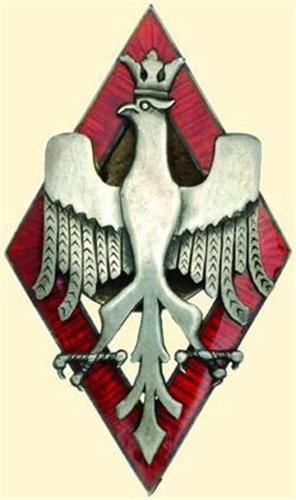 mm; screw on reverse. Fine quality and condition! WES. 835 var.<BR><b>Country:</b> POLAND<BR><b>Type:</b> REGIMENTAL BADGES<BR><b>Group:</b> BADGES OF WORLD WAR I