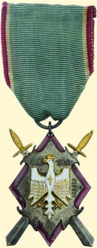 and white border stripes). Fine design and quality with small signs of wearing! WES. 836 var.<BR><b>Country:</b> POLAND<BR><b>Type:</b> REGIMENTAL BADGES<BR><b>Group:</b> BADGES OF WORLD WAR I