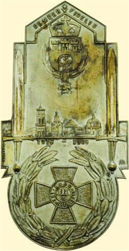 of Lwow with miniature Order Virtuti Militari, silhouette of towers of Lwow with dates "1918-1938"
