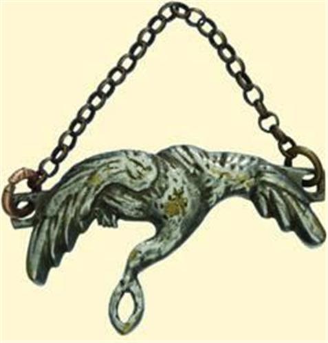 "Half size"-badge, tombak silver plated, one part cut out construction with tiny hanger chain, size