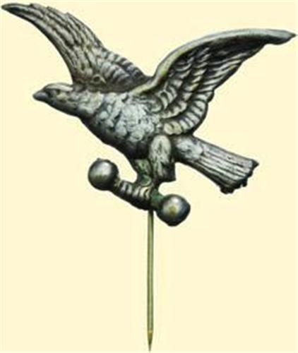 Flying Falcon with dumbbell, thin tombak sheet silver plated, hollow stamped, size 43,2 x 35,2 mm;