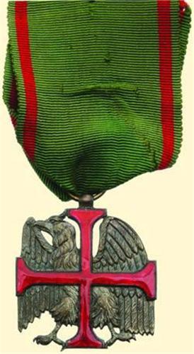 Breast badge, tombak silver plated and patinated, cross obverse red enamelled, one part cut out construction,