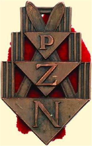 with red felt background. Modern design from the thirties, signs of wearing. WES. 1034 var.<BR><b>Country:</b> POLAND<BR><b>Type:</b> REGIMENTAL BADGES<BR><b>Group:</b> MILITARY AND PARAMILITARY ASSOCIATION BADGES