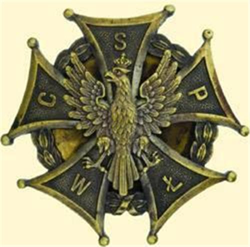 reverse, maker's mark "J.MICHROWSKI, Warszawa...". WES. 601 var.<BR><b>Country:</b> POLAND<BR><b>Type:</b> REGIMENTAL BADGES<BR><b>Group:</b> SIGNAL CORPS REGIMENTAL BADGES