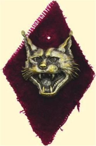 background, size (total) ca. 40 x 60 mm (lynx-head 24,6 x 28,3 mm); screw on reverse, maker's mark