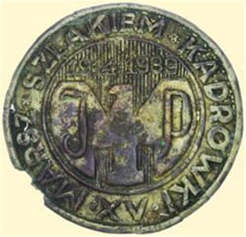 screw on reverse. Severe signs of age and wearing, cracks and breackings on the rim! WES. 970 var.<BR><b>Country:</b> POLAND<BR><b>Type:</b> REGIMENTAL BADGES<BR><b>Group:</b> MILITARY AND PARAMILITARY ASSOCIATION BADGES