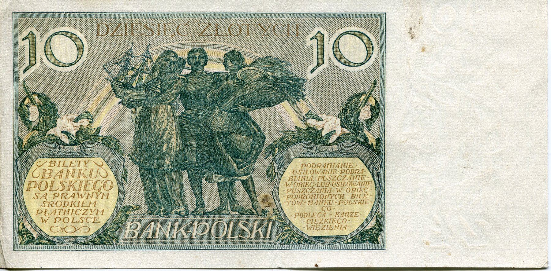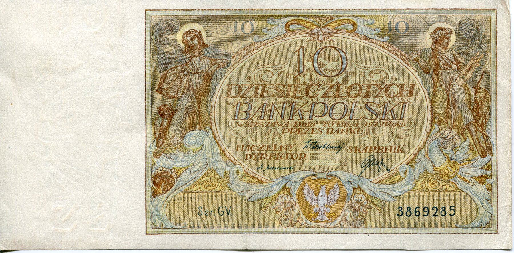 POLAND OLD PAPER MONEY 10 ZLOTY ISSUED 1929