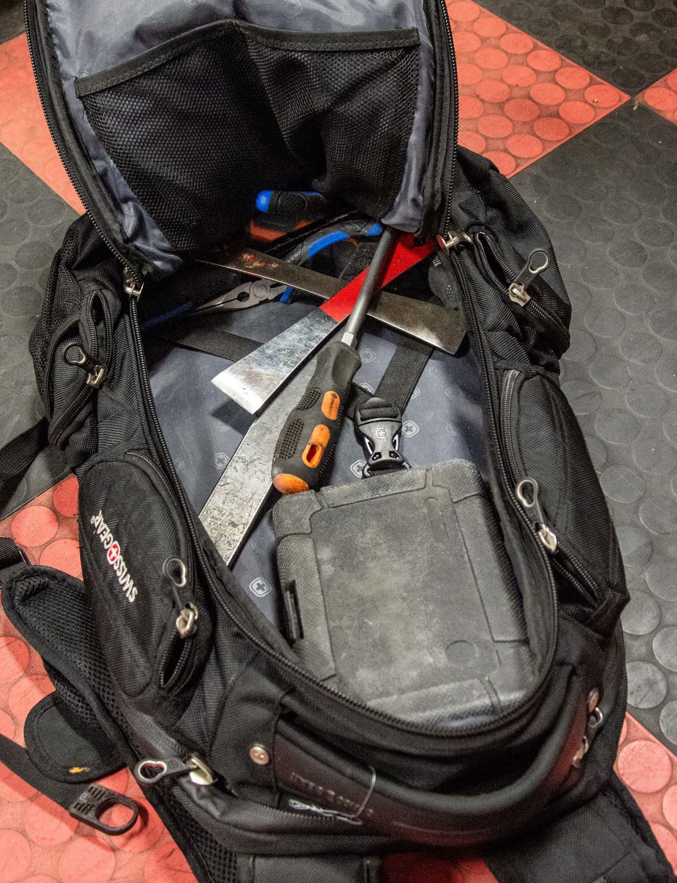 POLICE SEIZURE-BLACK SWISS BACKPACK AND MISC TOOLS