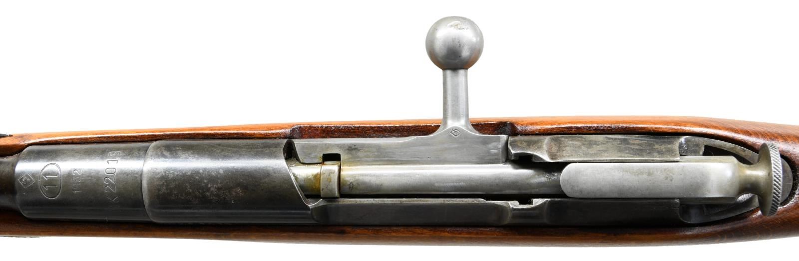 Cal. 7.62x54R. S# MK22019. Bbl. 20 1/2" w/ import marking. Mismatched numbers throughout. Top of bbl. has Radom factory circle "11" marking, 1952 date & serial number. Left side of receiver has importer added serial. Tangent rear sight graduated to 1000m. Post front sight w/ hood. Folding spike bayonet present w/ 12" blade. Beech stock set w/ sling slots & Com-Bloc style sling. No cleaning rod present. CONDITION: refinished stock set w/ added varnish, scattered dings & handling marks. Magazine assembly & buttplate have been cleaned to silvery gray w/ light pitting & oxidation staining. Balance of metal is turning gray w/ faded touch up blue, a deep scratch on left rear of receiver & some scattered oxidation. Good bore w/ some light frosting. (23-2003/MJC). CURIO. $100-300.