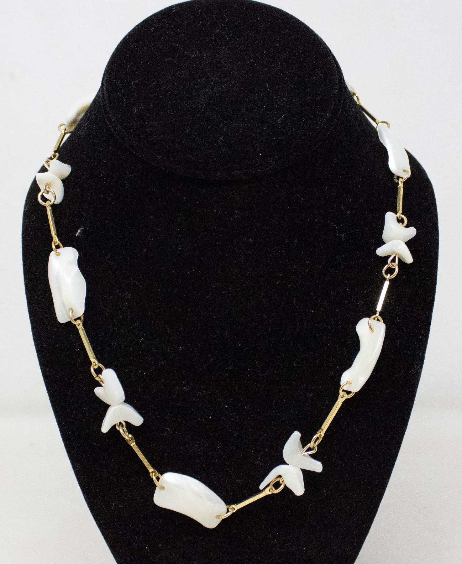 POLISHED SHELL NECKLACE W GOLD TONE LINKS