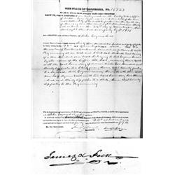 <b>756. JAMES K. POLK</b> Unusual partly-printed D.S. as Governor of Tennessee on State of Tennessee form, 1p. folio, Nashville, Dec. 24, 1840, a land grant of 33 acres in Dickson County, Tenn. to John Grymes. Fold crease slightly affects the bold signature with minor fold separations and toning, else very good.<b>$800-1,000</b>