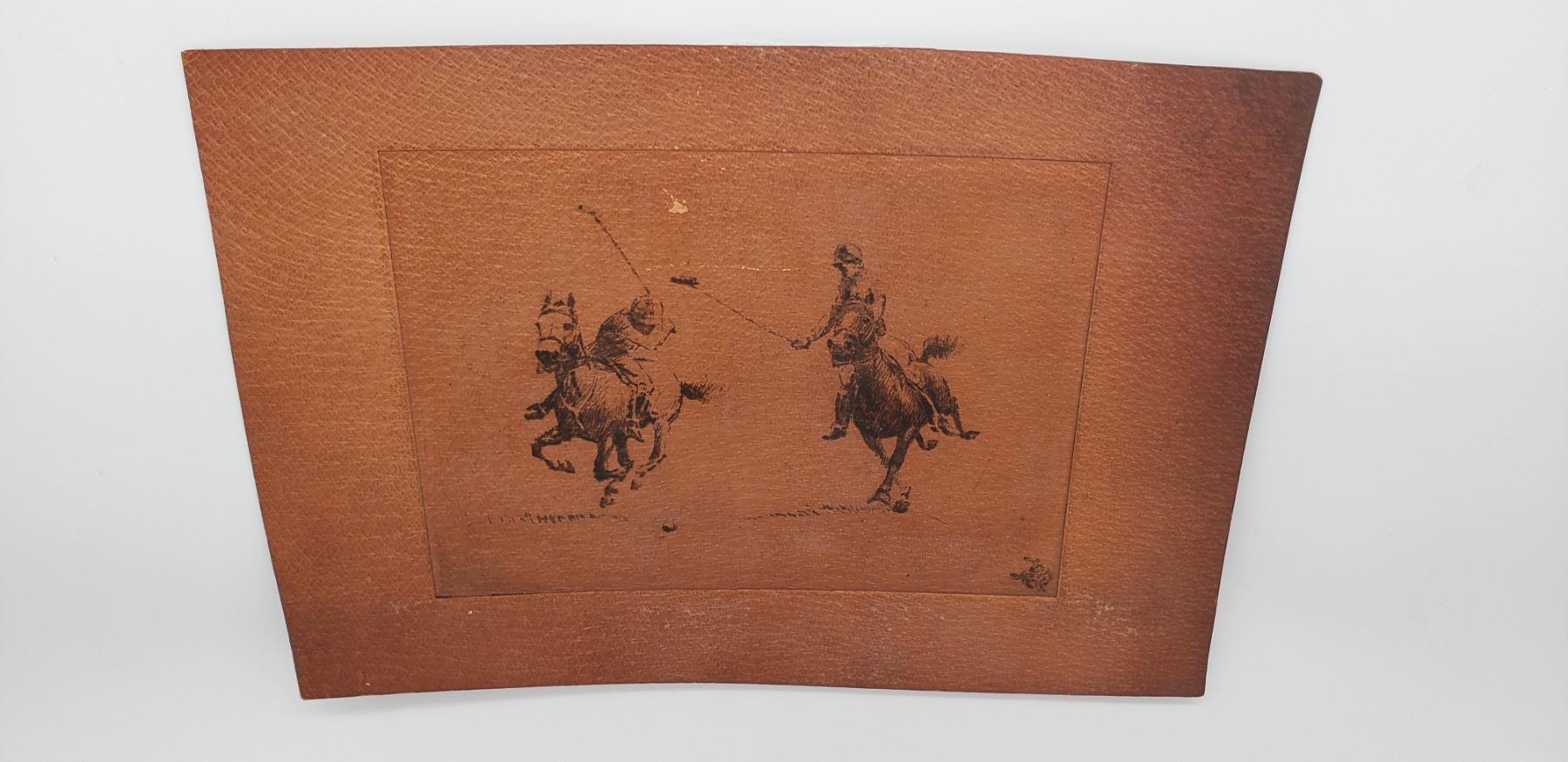 Polo Players Stamped on Leather Piece is 10" x 7" All items Located in in Hollywood Florida Warehouse For Shipping Call today for quote they have item numbers and Pak Mail is available for all your custom packaging and shipping needs. We can package, palletize, crate, insure and ship to any Domestic or International location. All packaging and shipping fees must be paid in full before shipment is released. On international shipments, consignee is responsible for all Duties, Taxes, Customs Clearance or any destination fees that apply. Please visit our website @ www.pakmail.com/us770 for contact information or to get a quote. (Let us know you are a winning bidder from the Puckett auction so we can correctly arrange pick up for your item