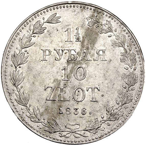 POLONIA. Dominación rusa. 10 zlotich 1 1/2 rublo. 1836. MW. C-134. EBC-.