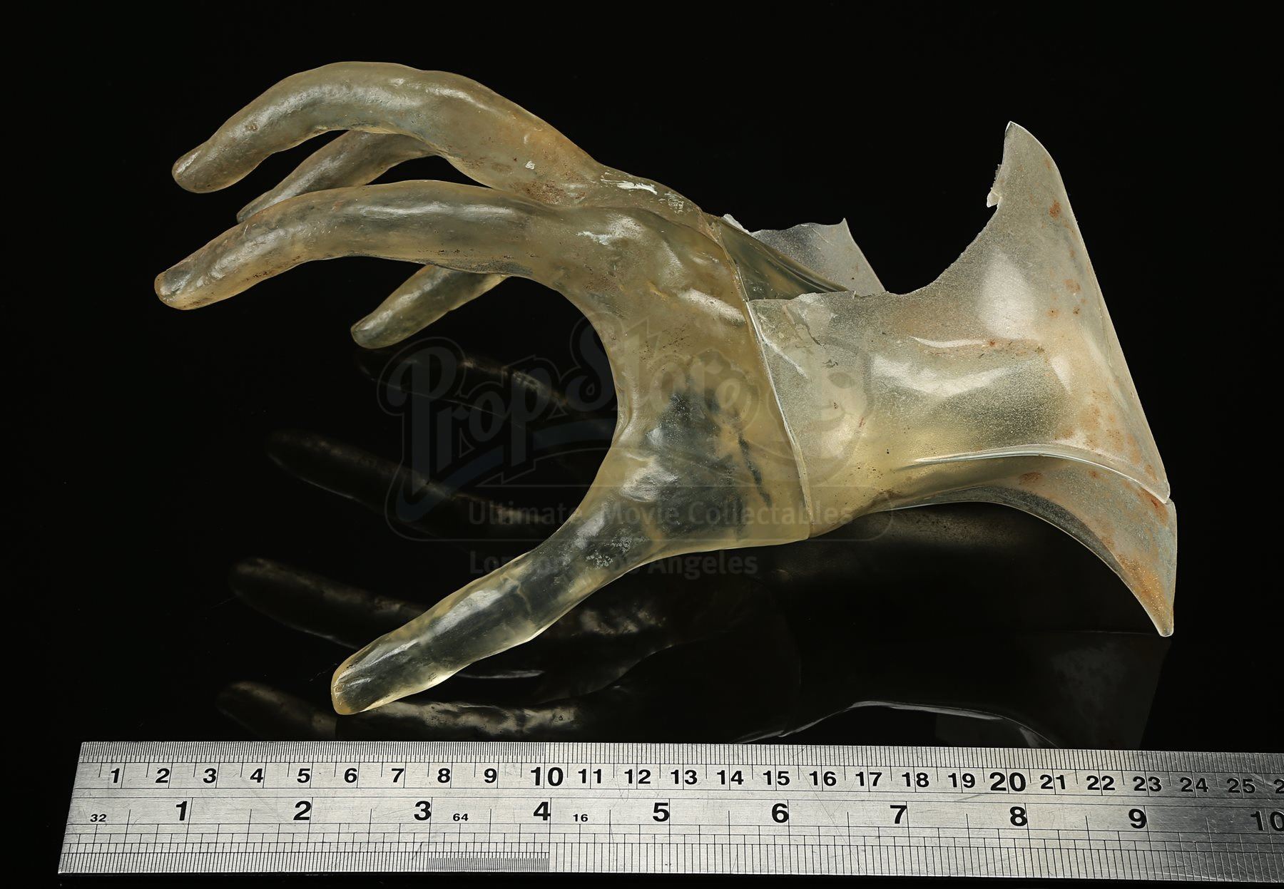 11.2. In the catalogue descriptions, Prop Store takes steps to identify and provide provenance for Lots offered at auction. In many cases, the Lots offered were used in or in conjunction with motion pictures or other programmes and information is furnished in order to fully identify and describe the Lot offered at Auction, including photographs and illustrations. Prop Store in no way claims any connection to or relationship with the producers of the motion picture or other programme. In all cases, the use of the titles or other elements of a motion picture or other programme is for informational purposes only.