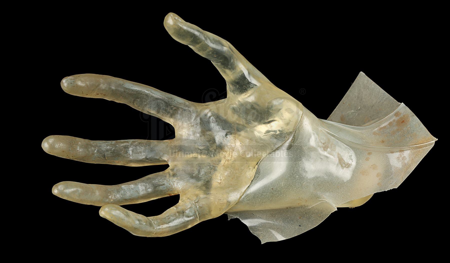 A poltergeist reference hand from Tobe Hooper’s horror classic Poltergeist. Reference hands were used by the film’s animators to help create the eerie visual effect during the scene in which Carol Anne (Heather O’Rourke) approached the television late at night and a ghost reached out of the screen.