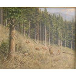 POLZER-HODITZ, Arthur Graf, 1870- . “Deer foraging on a Mountainside”.