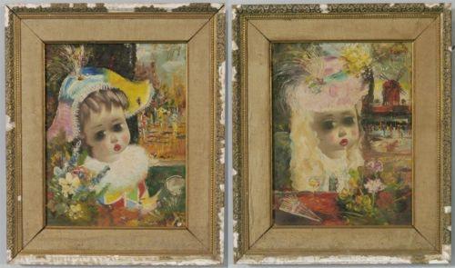 PONCINI (20th century, Paris) pair, each 13 3/4"x10 3/4" o/b depicting Moulin RougeCONDITION: 3/4" puncture in one, frames as-is, PACKING AND SHIPPING BY FAIRFIELD AUCTION WITHIN CONTINENTAL USA (excluding insurance) $30,