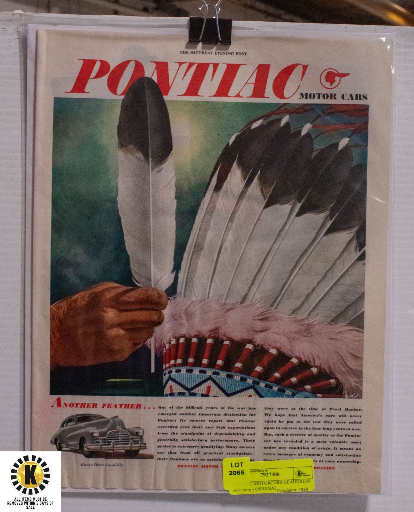 PONTIAC MOTORCARS HEADDRESS AD. 1946 - ORIGINAL