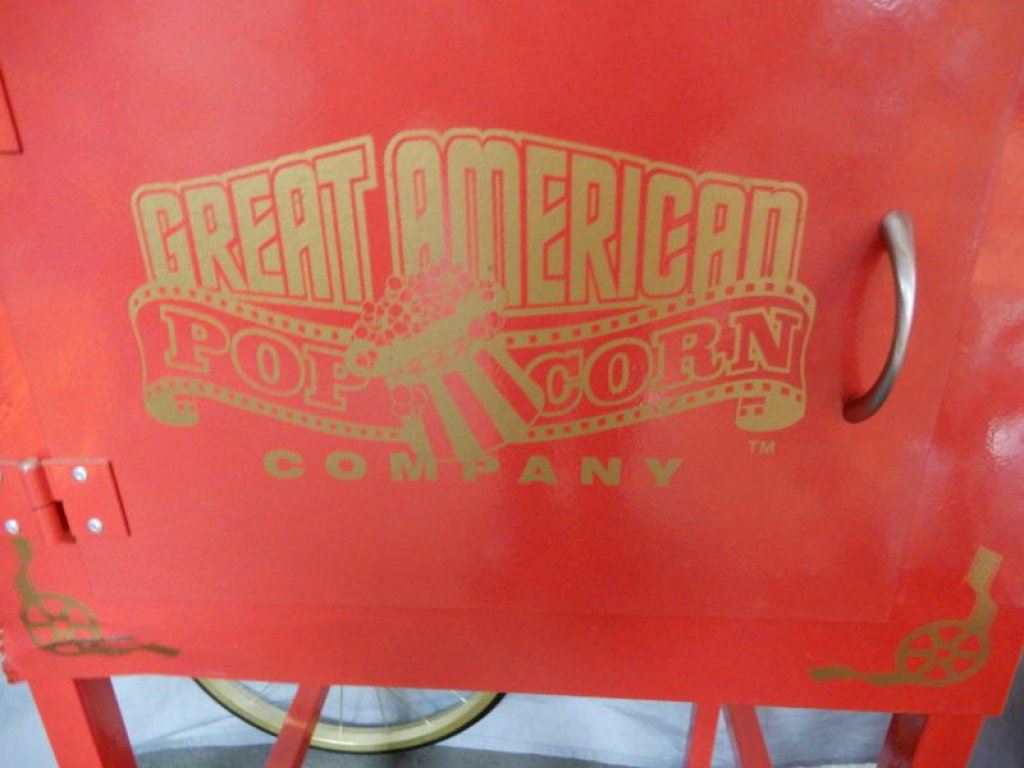 POPCORN CART WITH WHEELS 31" X 20" X 57" LOCATION: LOWER RIGHT