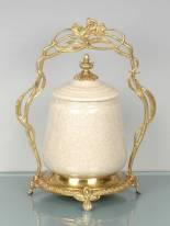FINE PORCELAIN - CRACKLED FINISH - BRASS ACCENTS - 9LX7WX12H