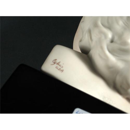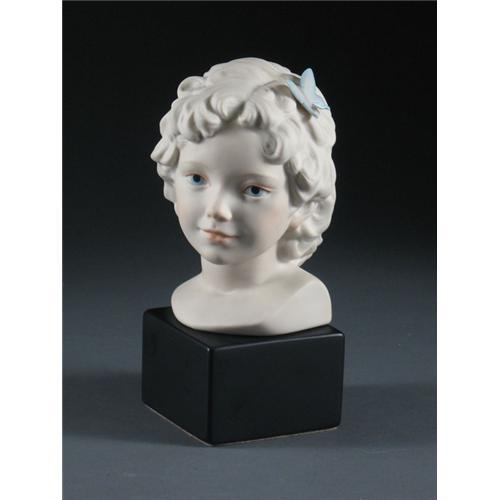 PORCELAIN: A handcrafted and hand decorated figurine by Cybis Porcelains, ''Psyche, Eros's True Love'', female head with butterfly, attached ebony stand, part of the Fantasia Collection, Design No. AD4026, Hallmarked, signed ''Cybis USA'', open stock, 9 1/4'' H. Cybis is a recognized source of high-end porcelain hand decorated in the US. Note: Mint Condition