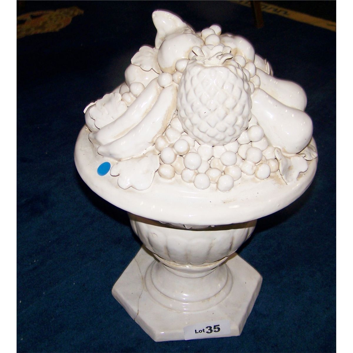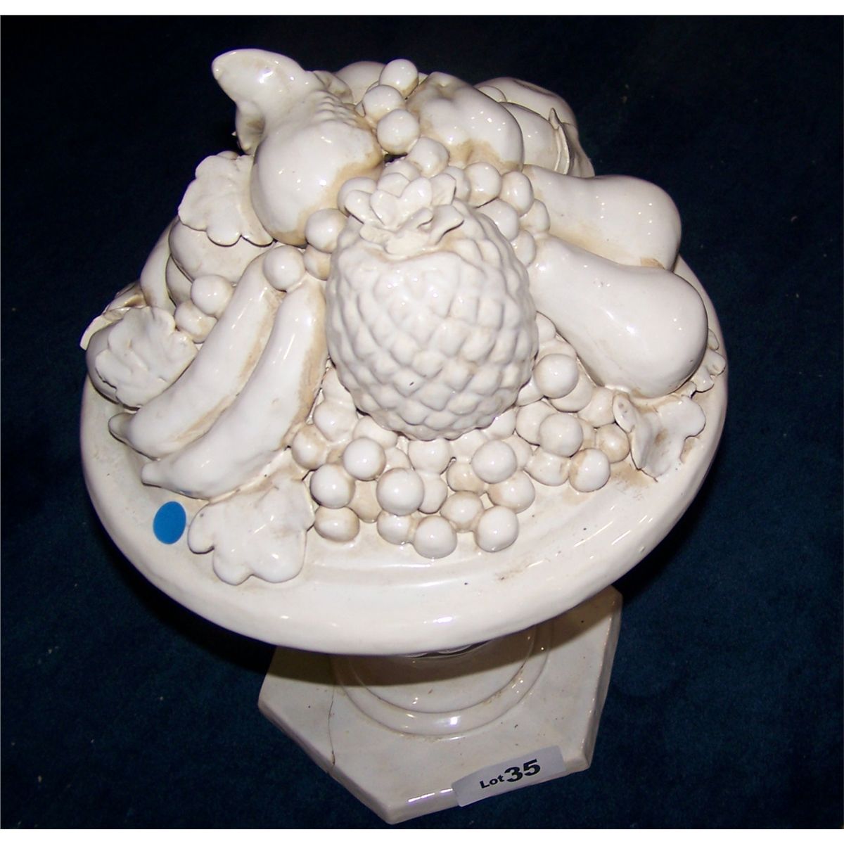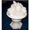 PORCELAIN DECORATIVE FRUIT BOWL, 17'T X 12W WITH REPAIRED BASE