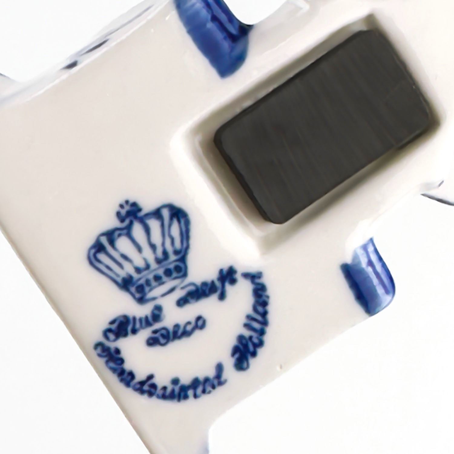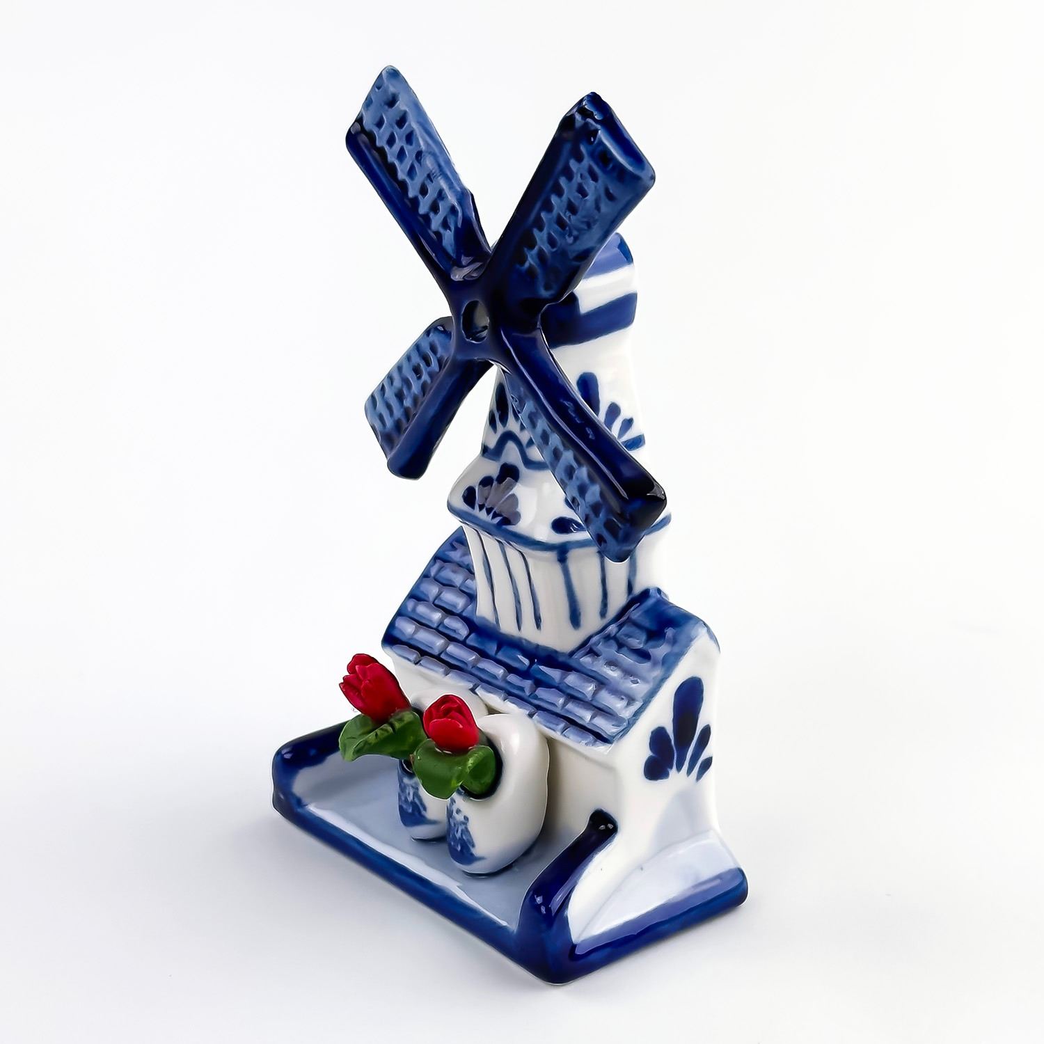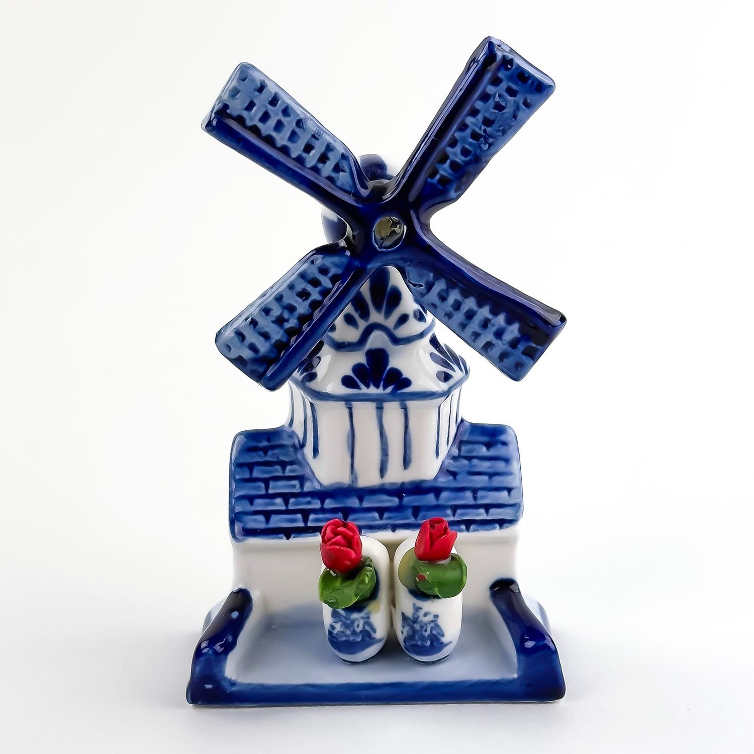 #8352 - SMALL DUTCH DELFT BLUE WINDMILL & DUTCH SHOES WITH ROSES FRIDGE MAGNET. MEASURES: 4” (10 CM) TALL BY 2.375” (6 CM) WIDE AND 1.375” (4 CM) DEEP