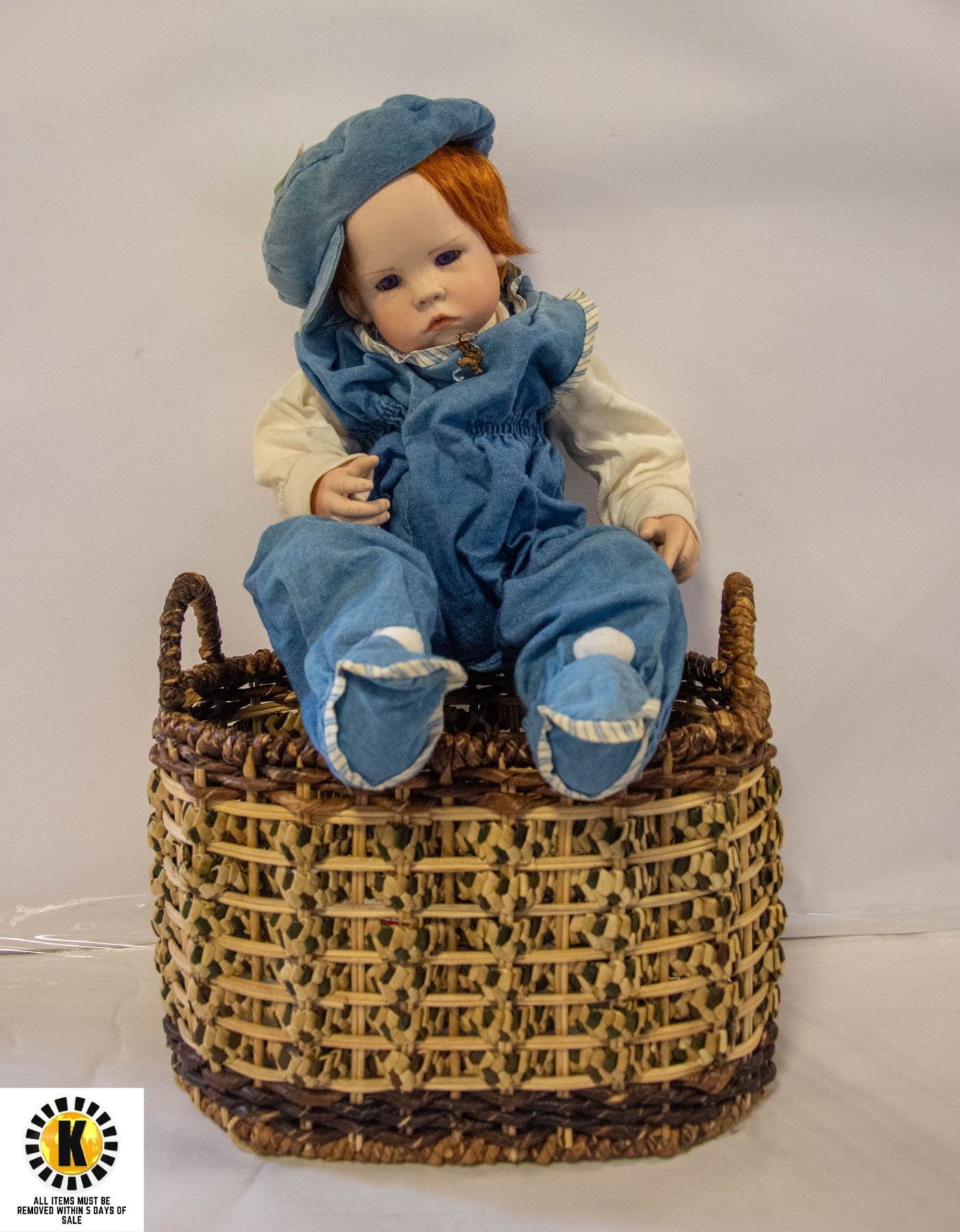 PORCELAIN DOLL IN BASKET