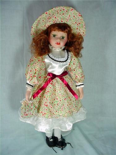 PORCELAIN DOLL IN COUNTRY DRESS AND HAT. 18".
