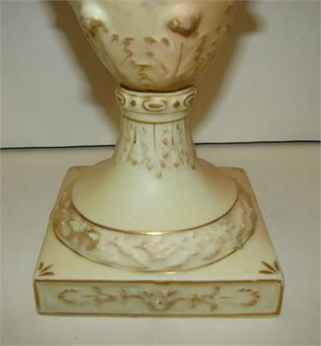 NEW YORK & RUDOLSTADT (1887-1918) GERMAN PORCELAIN MANTEL URN. Hand painted floral & gilt decorated. Urn is attached to porcelain base with a screw. Base is marked on bottom “Germany/Rudolstadt” with a crown and “RW”. Base is also stamped on bottom “5