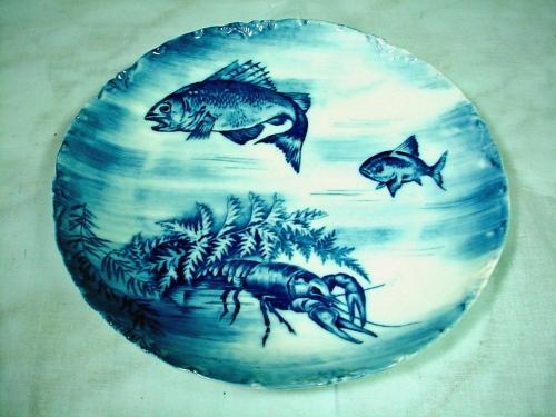 PORCELAIN PLATE WITH BLUE FISH PATTERN MARKED DELLI GERMANY, DELLI. 9".