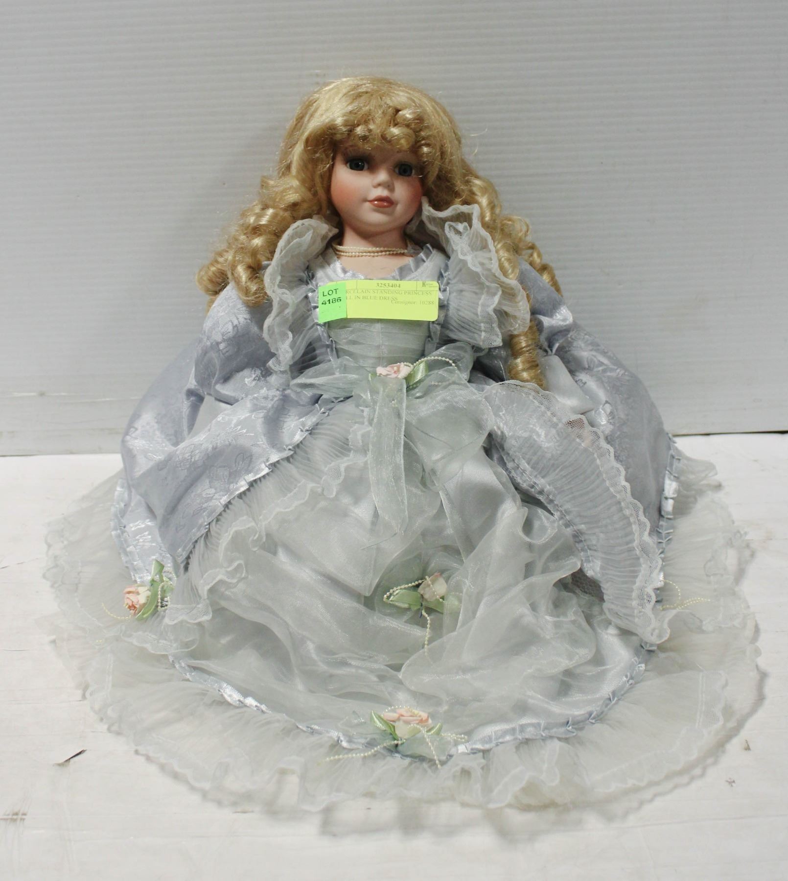 PORCELAIN STANDING PRINCESS DOLL IN BLUE DRESS