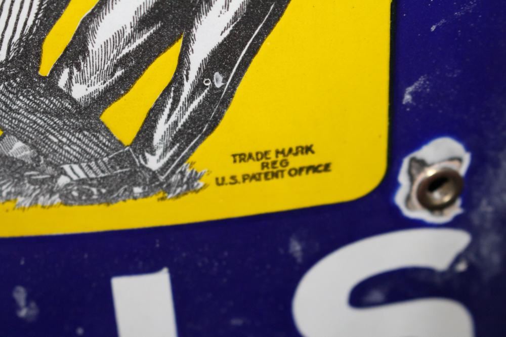 SSP, 14 X 18 7/8. SIGN HAS FADING AND WEAR TO THE FINISH. APPROXIMATE SHIPPING COST $24 TO $28. THIS ITEM IS GUARANTEED TO BE OLD AND ORIGINAL.