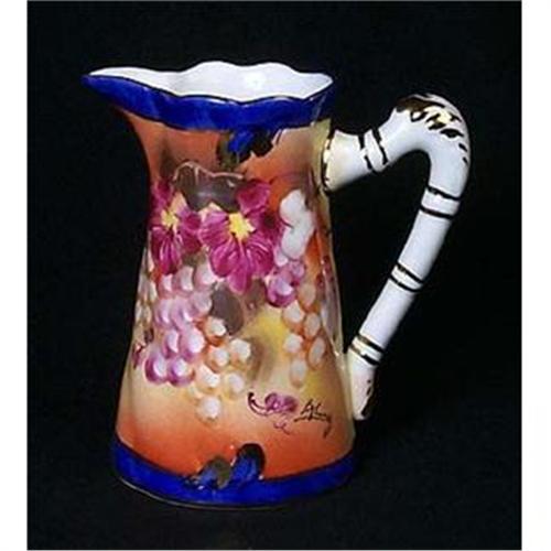 <tr><td>Title:PORCELAIN WATER PITCHER NEW / GRAPES FLORAL</td></tr>