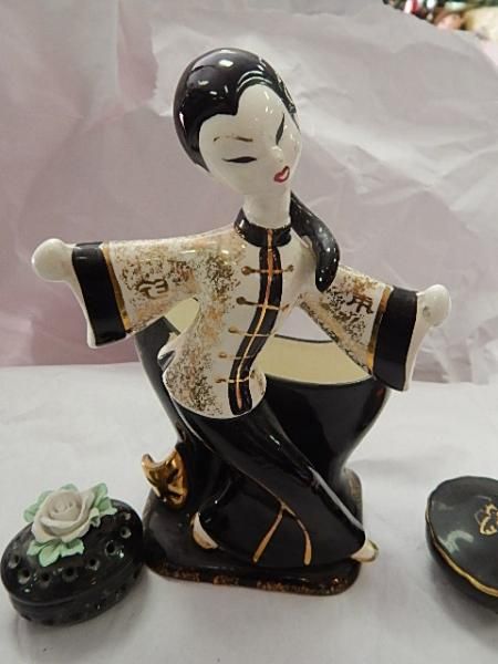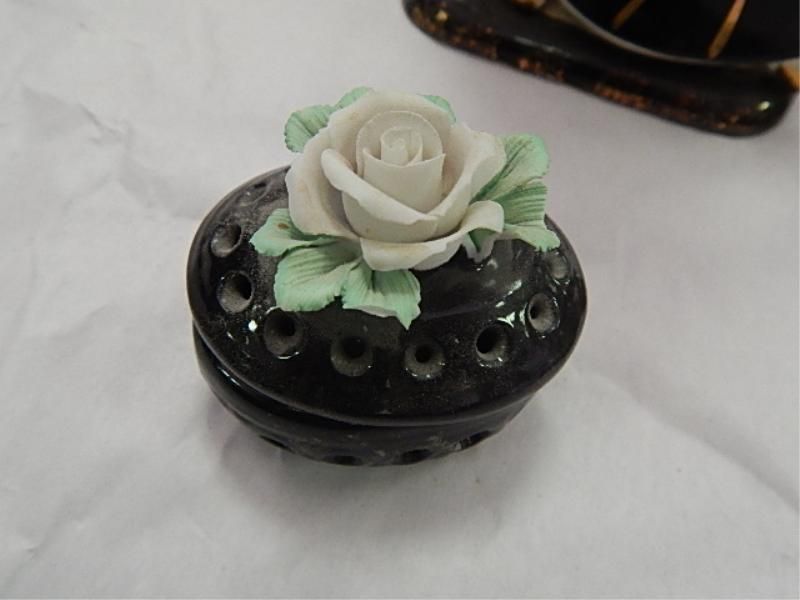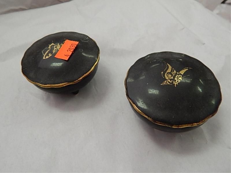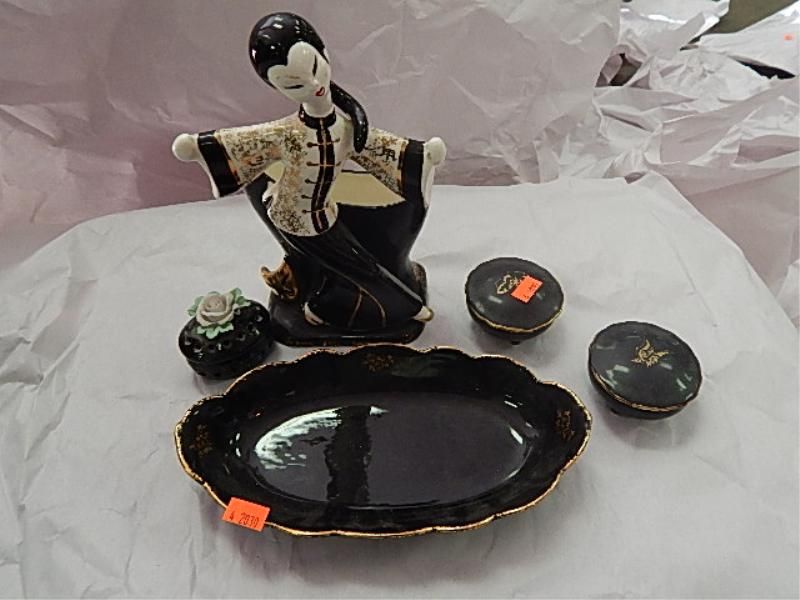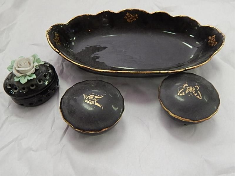 PORCELEIN - BLACK DANCER, TRAY & 3 SMALL LIDDED CONTAINERS