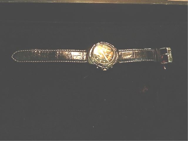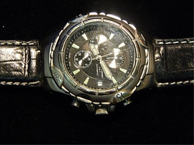 PORSCHE? DESIGN WATCH - WITH LEATHER STRAP - DATE & TIME - STAINLESS STEEL BACKING