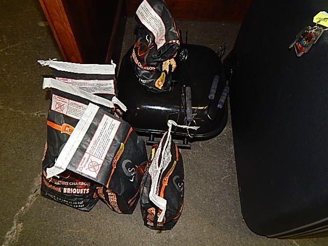 PORTABLE BBQ WITH 4 BAGS OF BRIQUETTES