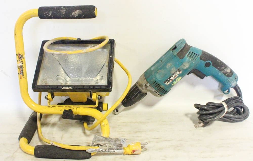 PORTABLE HALOGEN WORK LIGHT + MAKITA DRYWALL DRILL
