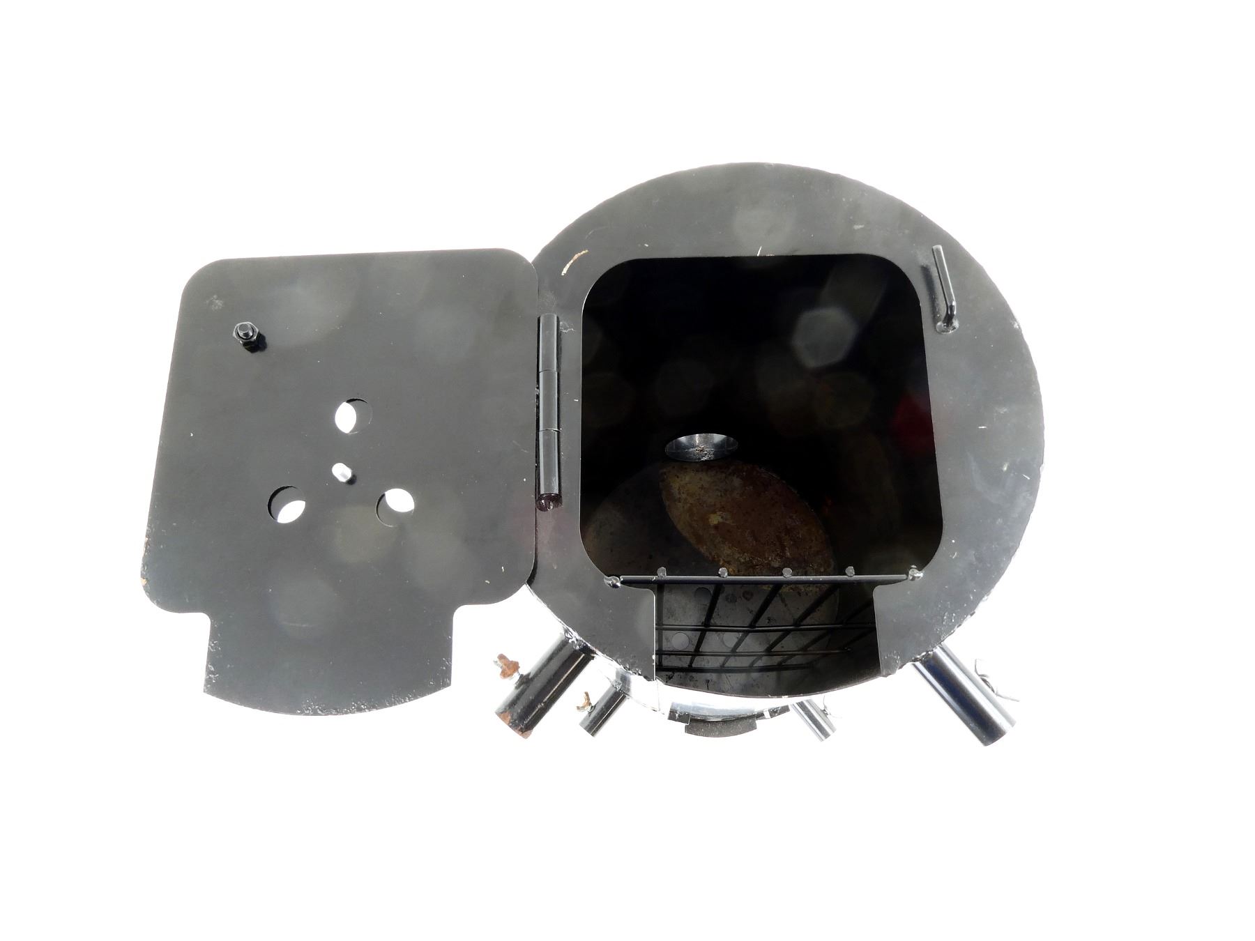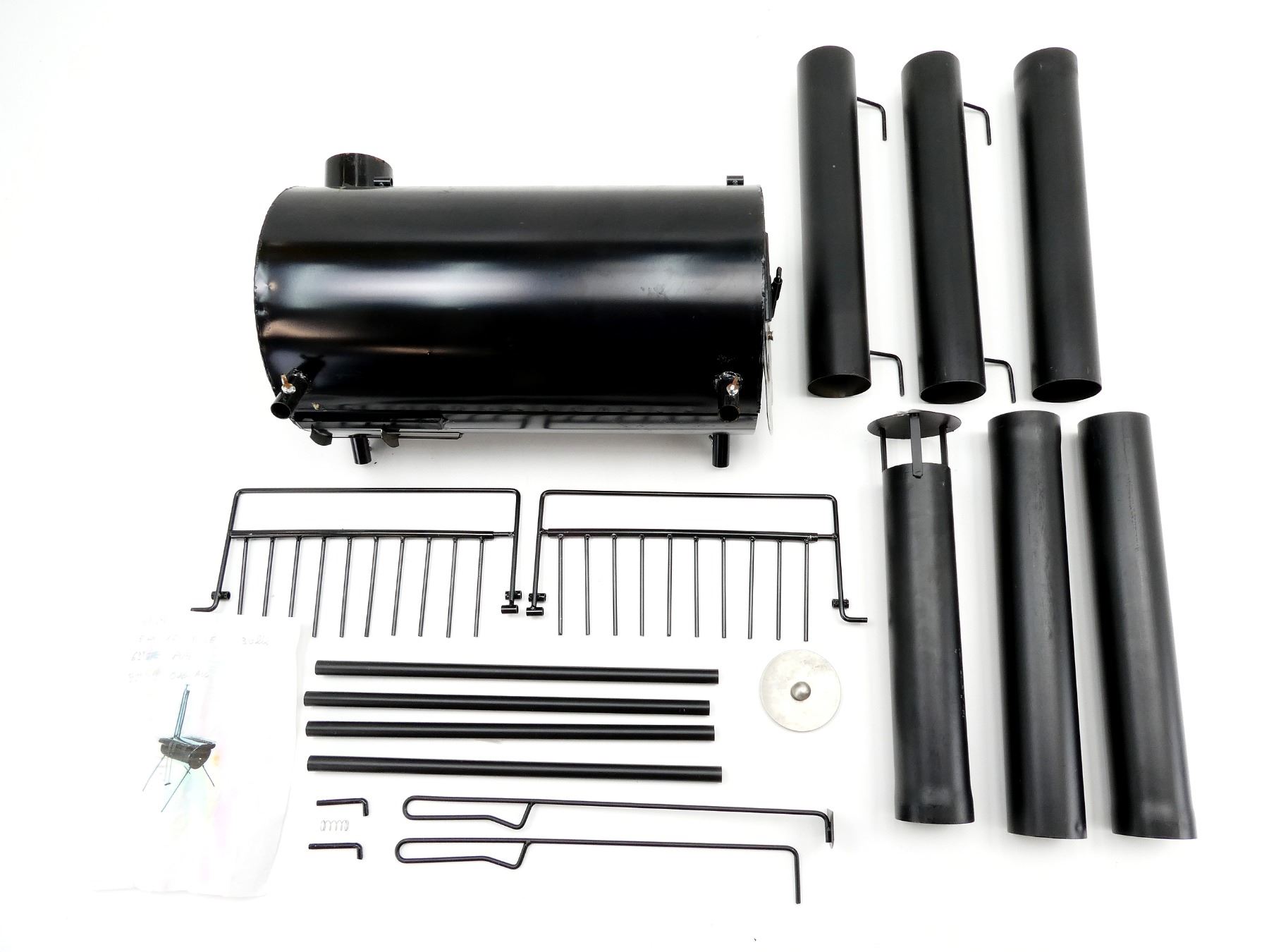 (1) PORTABLE WOOD STOVE, APPEARS COMPLETE, UNTESTED, WHEN ASSEMBLED APPROX. 85" X 18" X 10". SEE PHOTOS.