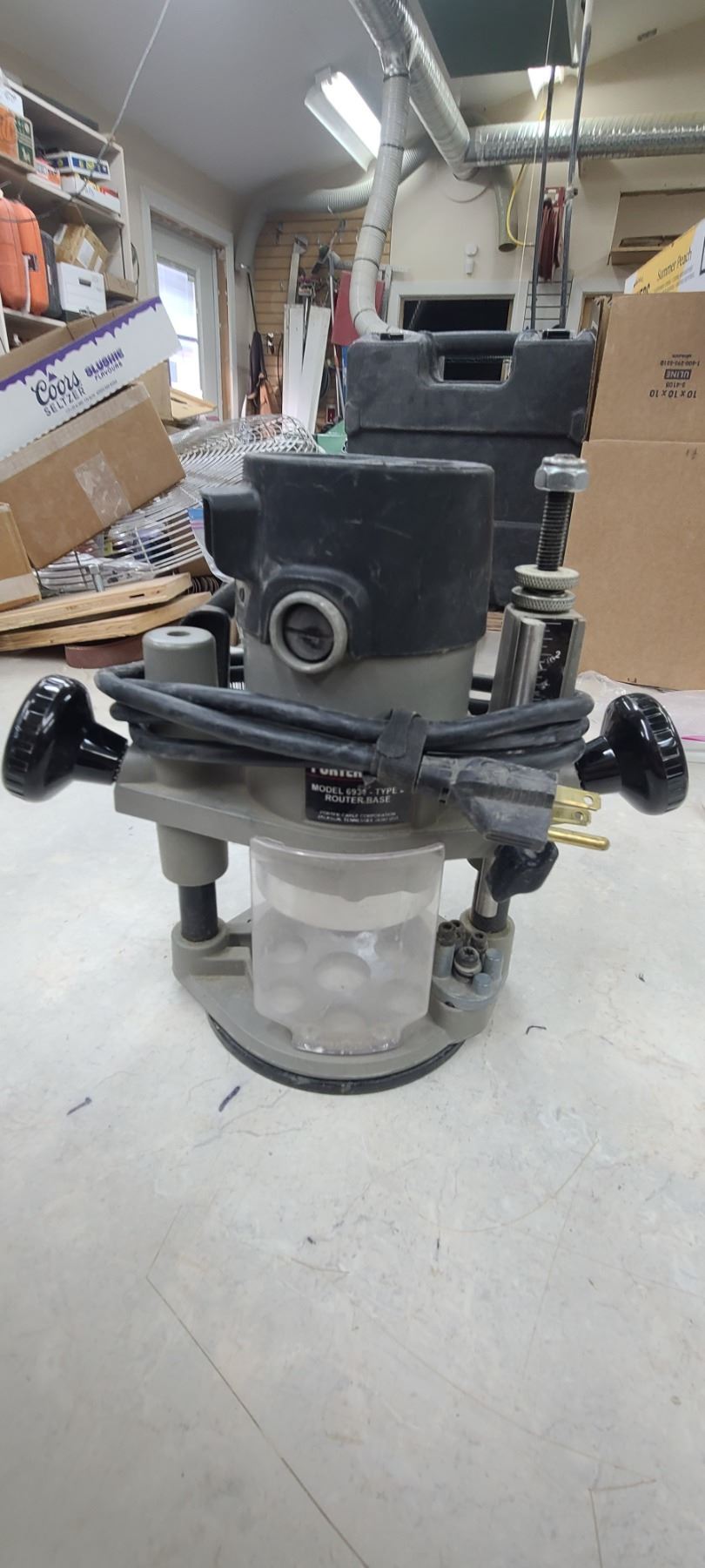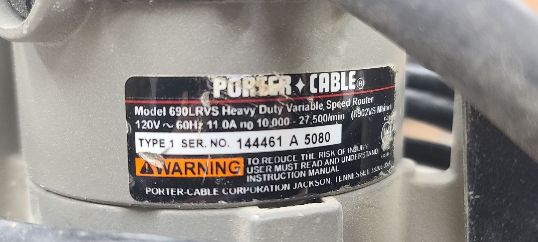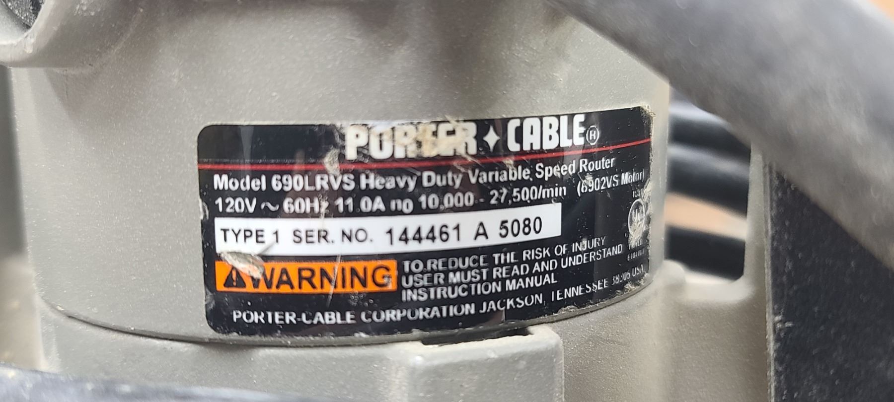 PORTER CABLE 690LRVS HEAVY DUTY VARIABLE SPEED ROUTER (DIAL IS MISSING, ROUTER STILL WORKS) COMES WITH ROUTER BASE AND COLLET -