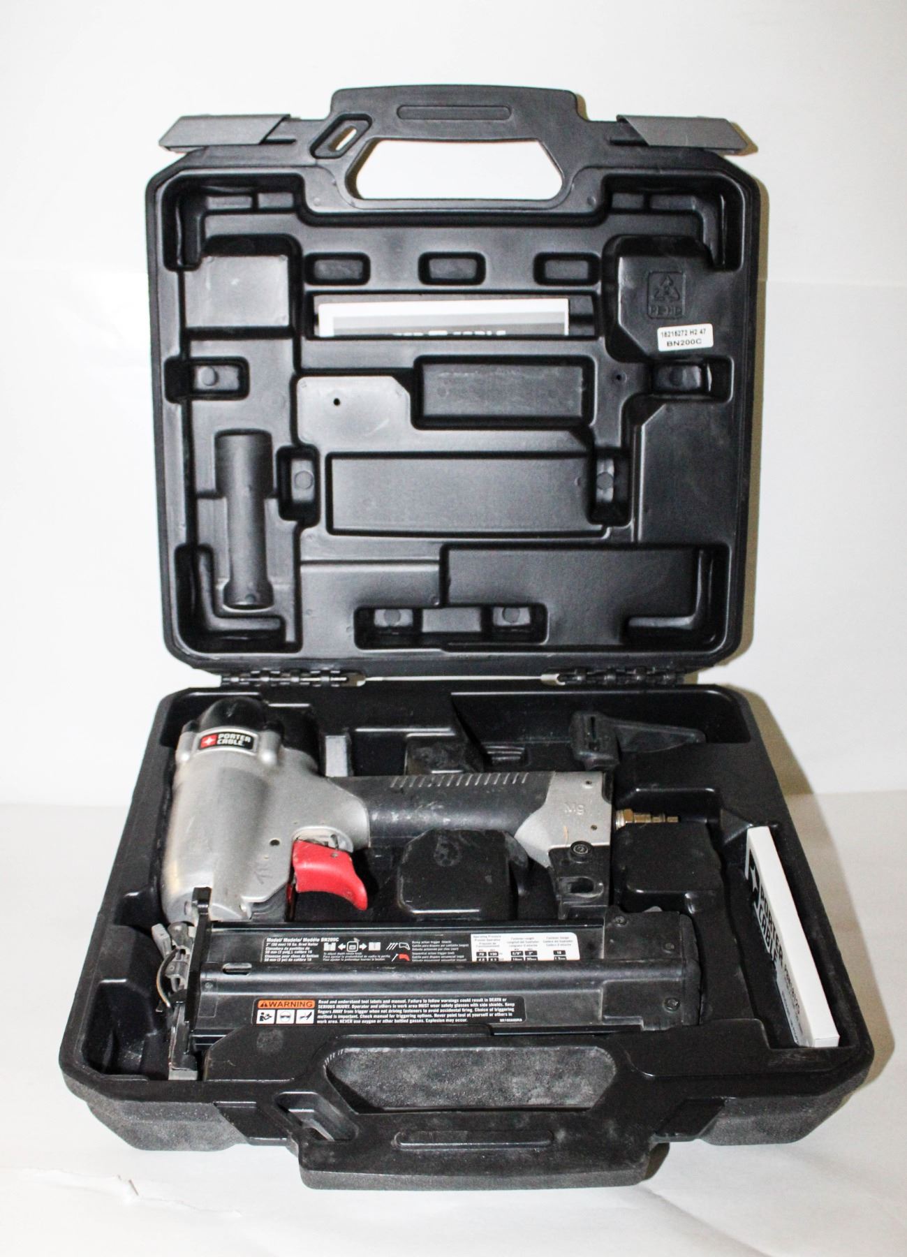 BRAD NAILER, 70-120 PSI, 5/8"-2" FASTENERS, 18 GAUGE - IN CASE WITH NAILS **ALL ITEMS MUST BE REMOVED BY 5PM SATURDAY, MARCH 8TH 2025. ALL REMAINING ITEMS WILL BE SUBJECT TO A $6.00 PER DAY STORAGE CHARGE. ANY ITEMS REMAINING AFTER MONDAY, MARCH 24TH 2025 WILL BE CONSIDERED FORFEITED. NO REFUNDS WILL BE ISSUED FOR FORFEITED ITEMS. TO SCHEDULE A PICK UP APPOINTMENT CLICK HERE