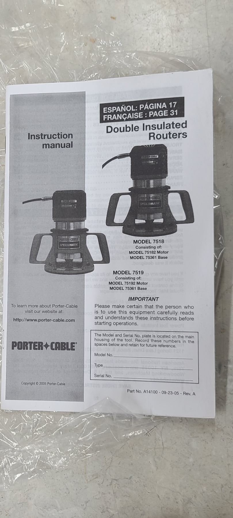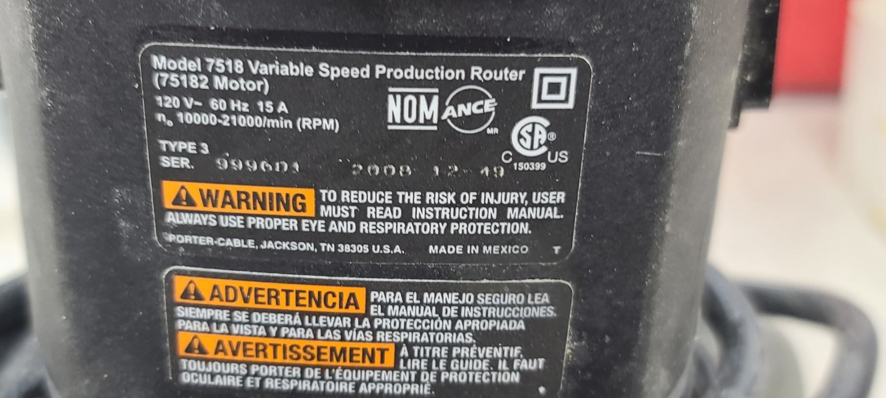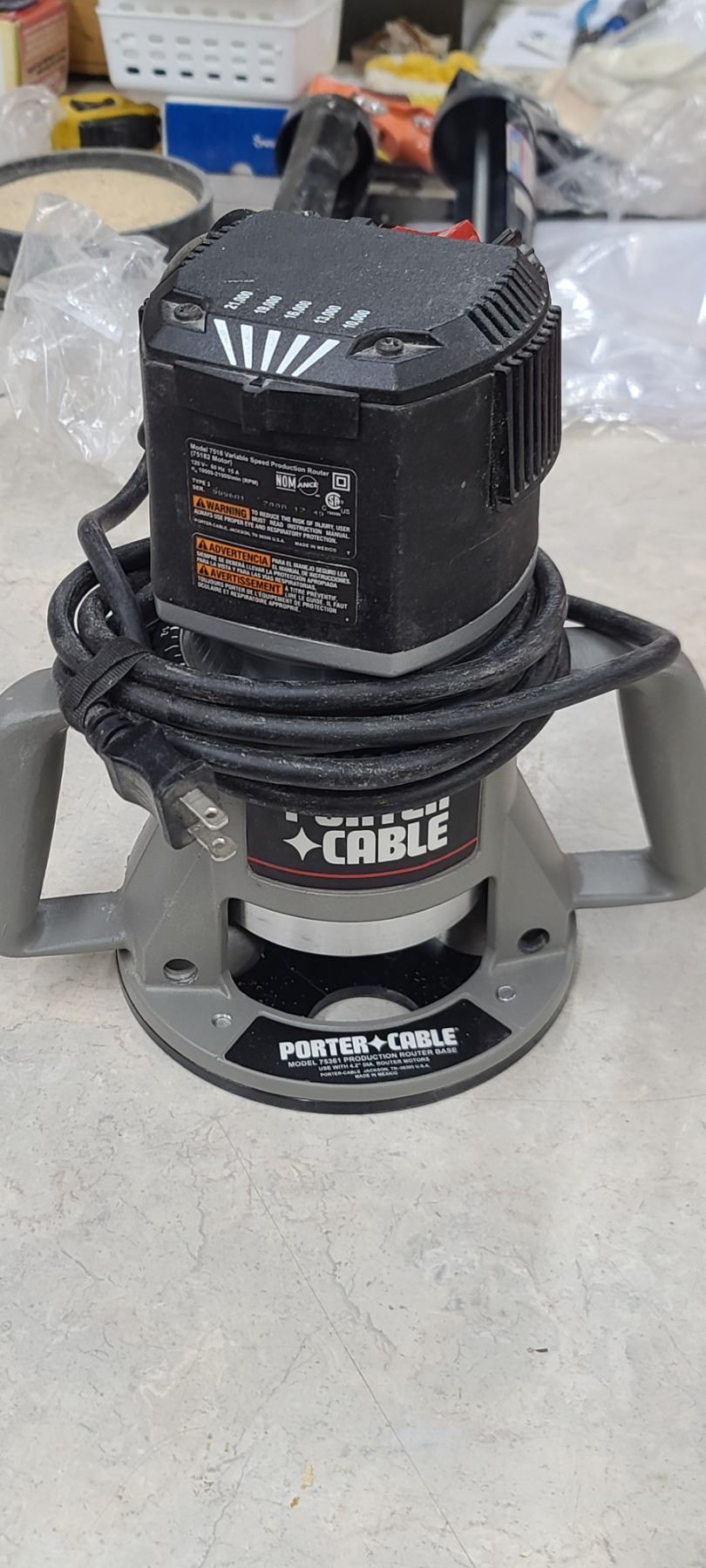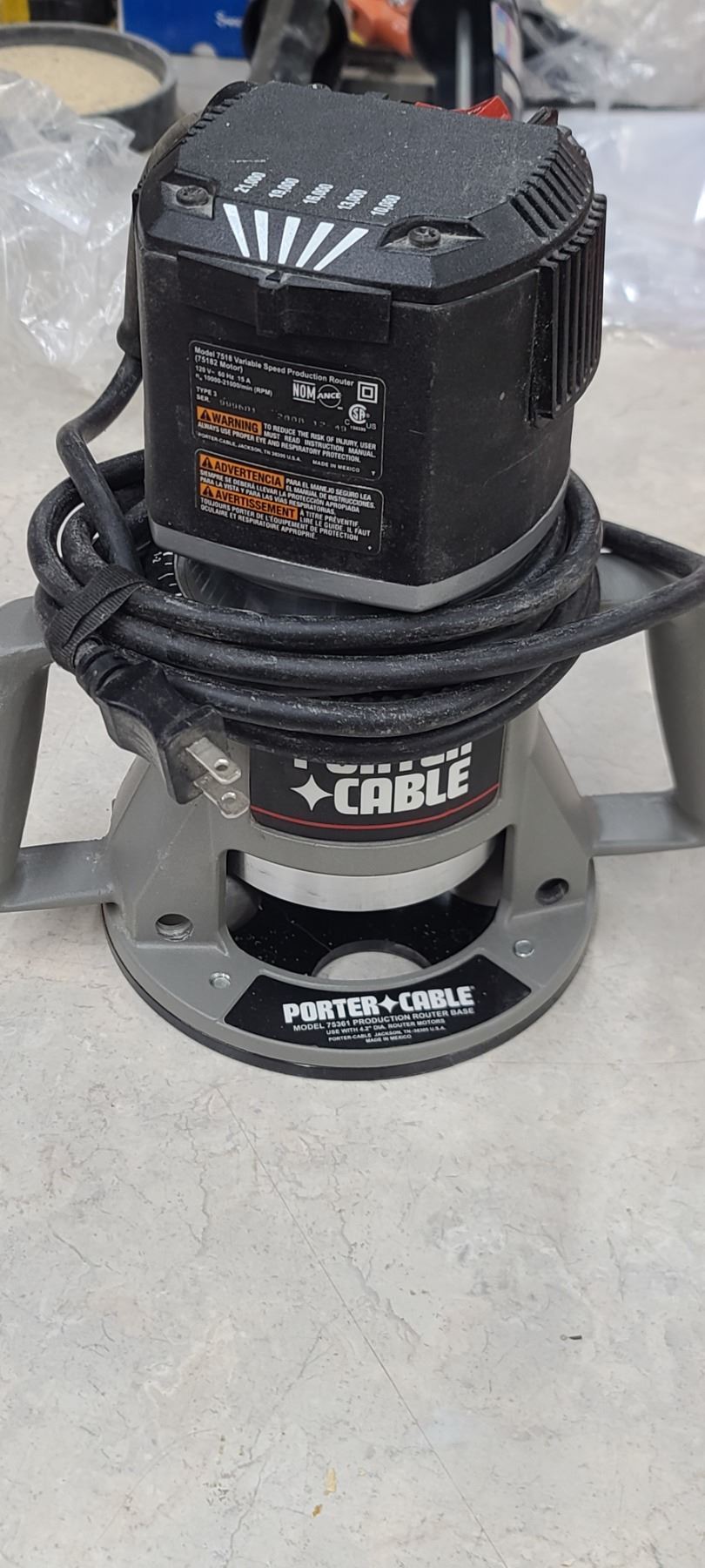 PORTER CABLE ROUTER NEAR NEW WITH THREE COLLET MODEL 7518 PROFESSIONAL ROUTER