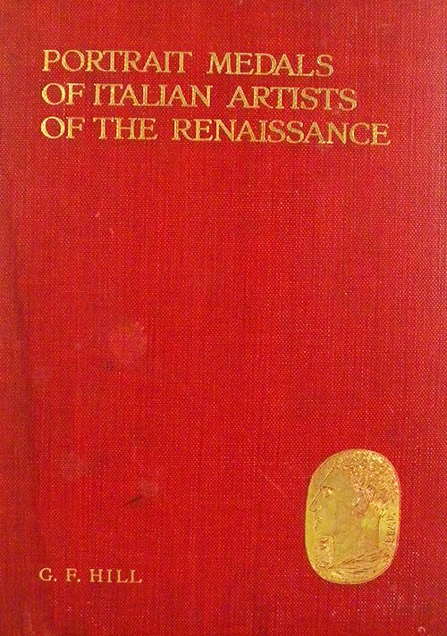 Hill, G.F. PORTRAIT MEDALS OF ITALIAN ARTISTS OF THE RENAISSANCE. ILLUSTRATED AND DESCRIBED, WITH AN INTRODUCTORY ESSAY ON THE ITALIAN MEDAL. London, 1912. 4to, original red cloth, gilt; top page edges gilt. Color frontispiece; xvii, (3), 92, (2), (2) pages; 32 exceptionally fine plates. Binding a bit loose; very good or better. A handsome production. One of only 750 copies printed. Clain-Stefanelli 14284.