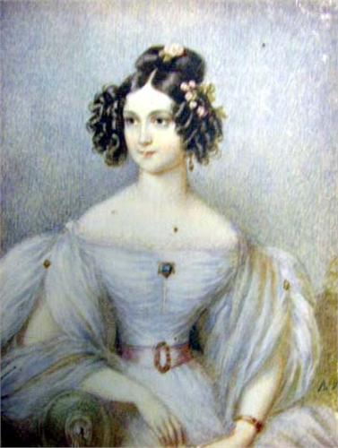 PORTRAIT MINIATURE; Possibly Alexandra Amalia, Princess of Bayern (frame distressed), 3"h x 3 1/4"w