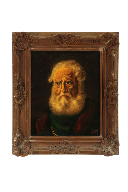 Oil on canvas, unsigned. Elderly bearded man. 21 1/2"h. 17"w., in a frame, 29 1/2"h. 25 1/2"w.